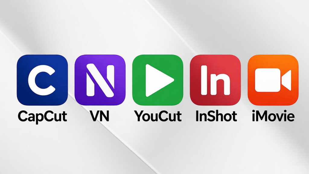 All 5 — CapCut, VN, YouCut, InShot, PowerDirector.